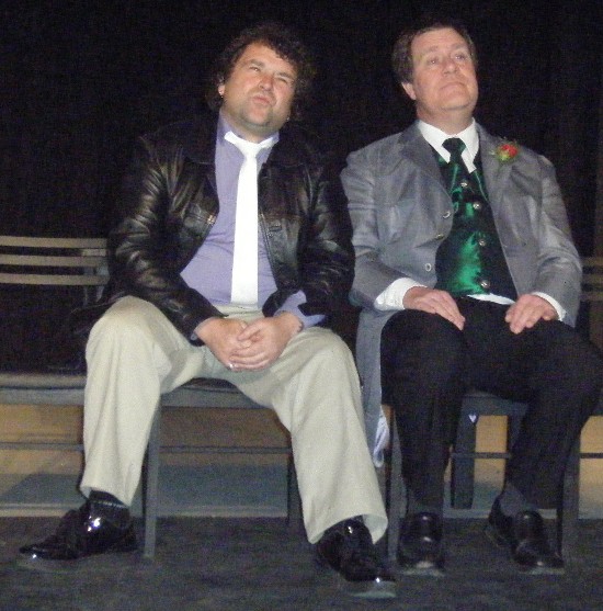 In the foreground (in a car), Mick Elsegood as "Terrence" and Sandy Monkman as "Louise".