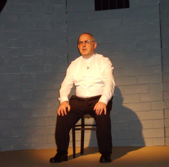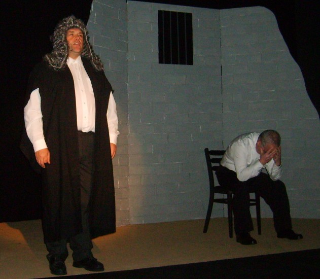 The Father as 'Judge Finnemore' pronounces the verdict on John Christie