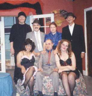 Standing L to R: Mick Elsegood as "The Burglar", Paul Woods as "Frank", Sylvia Nagle as "Madame Celestine", John Raine as "Micky"