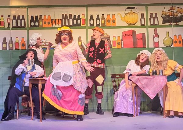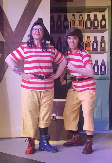 Paul Woods as "Mrs Hawkins" and Co;in Smith as "Squire Trelawney"