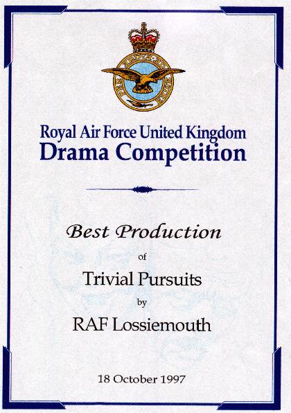 This play was the winning entry in the 1997 RAF UK Drama Competition. It was the first time that the Buccaneer Theatre Club had entered this competition.